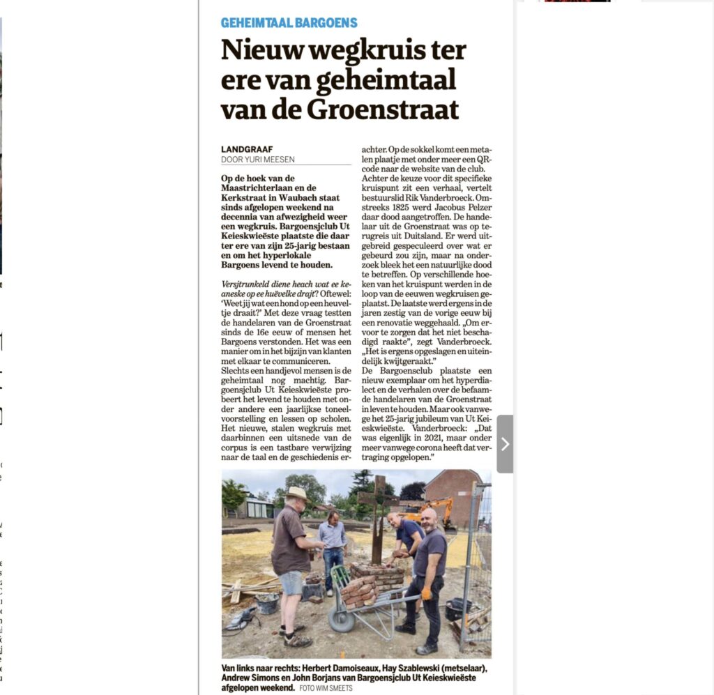 De Bargoensclub heeft dit nieuwe kruis ontworpen, gemaakt en in 2024 geplaatst ter ere van haar 25 jarig bestaan en uiteraard om een Groenstraater marskramer, die zeer waarschijnlijk Bargoens sprak, te eren.